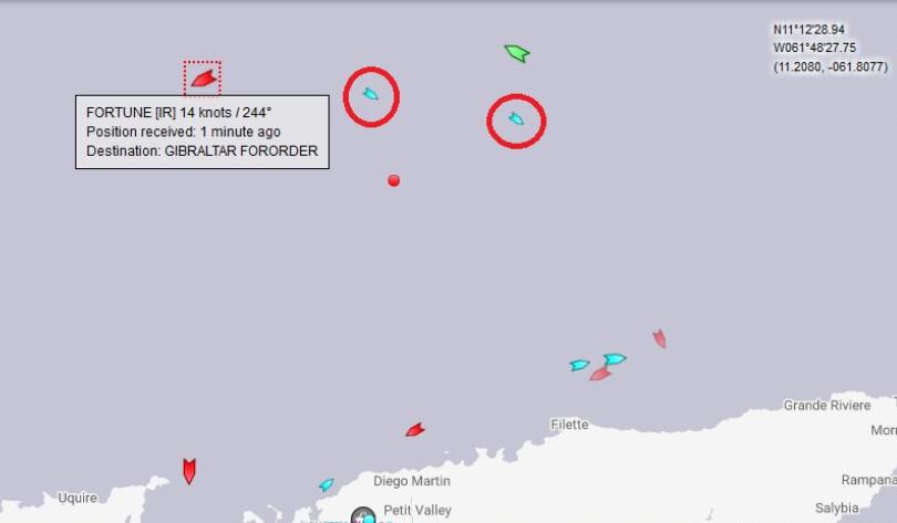 O primeiro de cinco petroleiros iranianos carregados com combustível para a Venezuela, o “Fortune”, chegou à Zona Econômica Exclusiva do país vizinho, neste sábado (23), de acordo com dados de rastreamento do tráfego marítimo. O movimento afronta sanções impostas pelos americanos contra o regime de Nicolás Maduro. As informações são da agência de notícia russa, Tass.