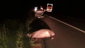 Motorista atropela capivara na MS-377 e um morre em acidente em Água Clara