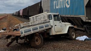 Caminhoneiro parou perto dos trilhos e foi atingido por trem