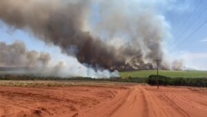 Incêndio em lavoura entre Goiás e MS mobiliza bombeiros