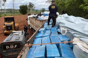 Motorista foge de bloqueio da PRF e abandona caminhonete com quase 2 toneladas de maconha