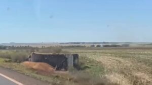 Caminhão carregado de milho tomba e motorista morre na MS-162