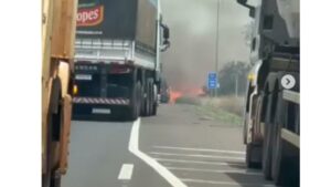 VÍDEO: BR-163 é liberada após incêndio interditar o trânsito em Nova Alvorada do Sul