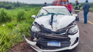 Carro oficial da prefeitura de Santa Rita do Pardo com paciente bate na traseira de carreta