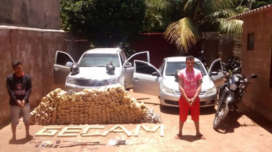 Na casa foram presos Osvaldo ferreira da Silva, 27, e Alexandre Pinheiro Santos, 22. Os militares também apreenderam 519 tabletes de maconha, que totalizaram 499,1 kg do entorpecente, uma espingarda, celulares e cartuchos.