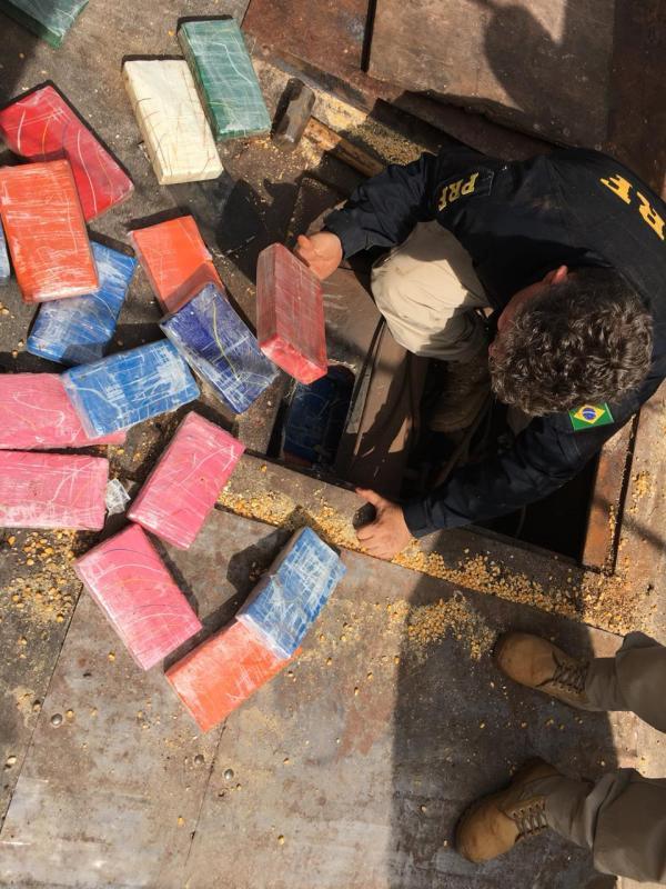 A PRF (Polícia Rodoviária Federal) apreendeu nesta segunda-feira, na rodovia BR-463, em Dourados, uma das principais do tráfico de drogas, 85,8 quilos de cocaína. O entorpecente estava escondido no tanque de uma carreta com placas de Campo Grande carregada com milho. O motorista, de 35 anos, disse que receberia R$ 12 mil pelo transporte e acabou preso.