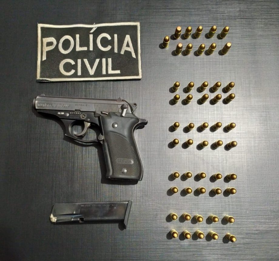 A prisão ocorreu durante o cumprimento de mandado de busca e apreensão na casa dele. O homem foi autuado em flagrante por posse irregular e, além da arma, a polícia apreendeu também dois computadores, dois celulares e um HD externo, que serão encaminhado à perícia.