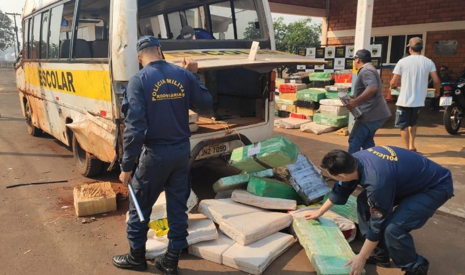Uma equipe da PMR (Polícia Militar Rodoviária) apreendeu na manhã desta quinta-feira (1) um micro ônibus escolar, com placas de Campo Grande, lotado de maconha. O veículo estava no trevo que dá acesso a Laguna Carapã, na região da Perimetral Norte, na BR-463.