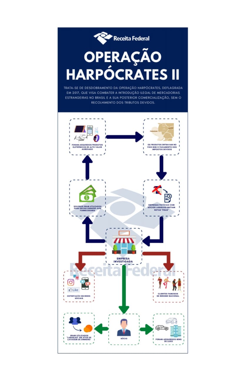 Na primeira fase, a operação investigava esquema que descobriu suposto descaminho e lavagem de dinheiro. Eram realizadas vendas de produtos eletrônicos como notebook e smartphones na loja de um hotel e também roupas de grife, importadas sem o pagamento de impostos. Os produtos eram vendidos nas lojas dos investigados.