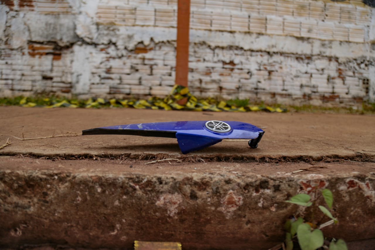 Allan dos Santos morreu após colidir sua YBR azul na noite dessa sexta-feira (17). Ele, de acordo com testemunhas, estaria fugindo de um carro após atropelar um pedestre. O veículo não tinha placas.