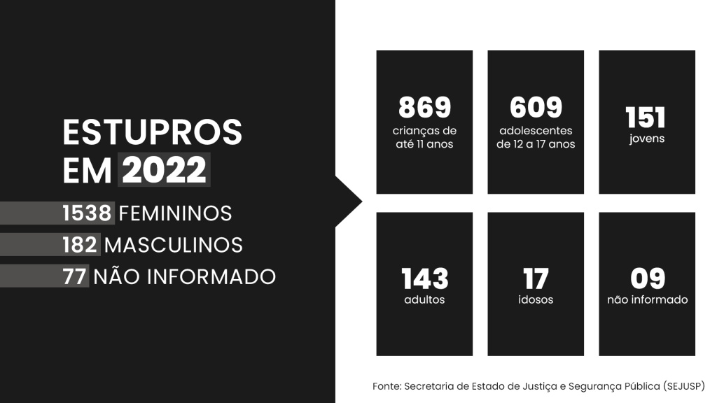 Em Mato Grosso do Sul, dados da Sejusp-MS (Secretaria de Estado de Justiça e Segurança Pública) mostram que dos 1.797 estupros registrados no Estado, em 85% dos casos as vítimas são do gênero feminino, ou seja, 1.538. O número é ainda pior quando o crime é detalhado por faixa etária. Crianças e adolescentes de 0 a 17 anos são 1.478 desse total de vítimas de abusadores.
