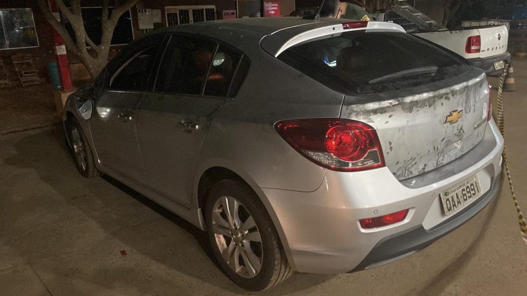 O veículo Chevrolet Cruze usado pelos bandidos que trocaram tiros com a Polícia Militar, durante a madrugada desta terça-feira (12), em um posto de gasolina, na BR-163, em Jaraguari, a 47 quilômetros de Campo Grande, havia sido furtado de uma residência, no Bairro São Francisco, pelo jardineiro da família.