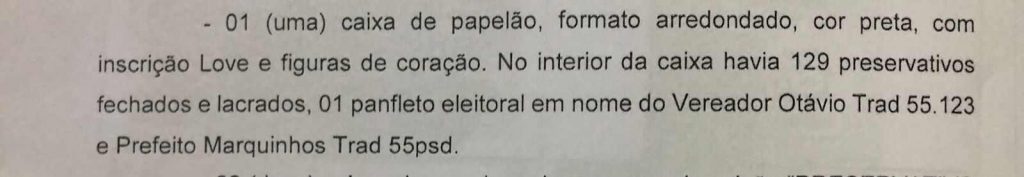 Conforme dados dos laudos periciais a que o Midiamax teve acesso, na casa de prostituição do ex-servidor da prefeitura, que já se tornou réu pelas acusações, foram encontrados materiais de campanha dos três candidatos. São ‘santinhos’ e adesivos, encontrados em meio a camisinhas que foram encontradas e também apreendidas no local.