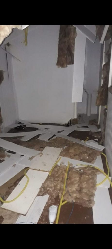 “Olha aí o contêiner, estouraram a fechadura, dá para ver aqui, estouraram a fechadura, olha o que fizeram, plantão passado não estava assim não. Olha a situação disso aqui, olha o telhado, o banheiro aqui parece que levaram todos os móveis do banheiro, levaram a pia, vaso, quebraram, arrombaram tudo aqui”, diz morador que gravou o vídeo.