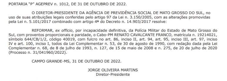 Conforme o Portal da Transparência e informações do Diário Oficial do Estado, ele era cabo da PMMS (Polícia Militar de Mato Grosso do Sul) e foi reformado em outubro de 2022 por motivos de doença por incapacidade definitiva, conforme o artigo 97 da Lei 3150/2005, que dispõe sobre a legislação previdenciária de servidores estaduais.