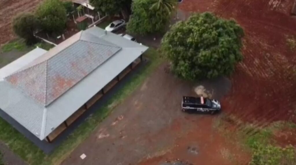 No local indicado os policiais encontraram dois contêineres recém pintados de verdes, cobertos por uma estrutura de telhas e fechado por um portão de metal para impedir a visualização de quem passasse pela região.