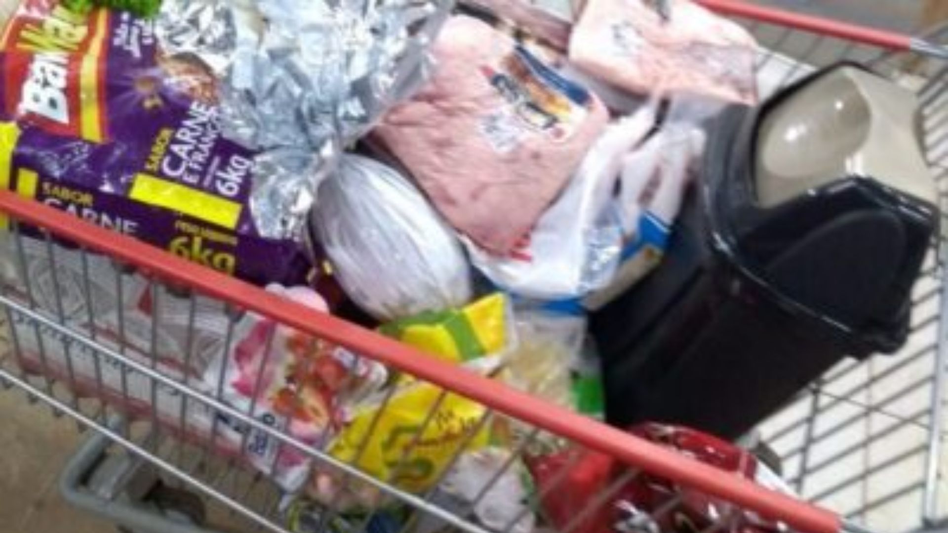 A jovem pagou a compra no valor de R$ 49, sendo que somente os produtos não passados na compra totalizaram R$ 110,31, entre filé de frango, minibolo recheado, pacotes de batata congelada e de pão de queijo e leite.
