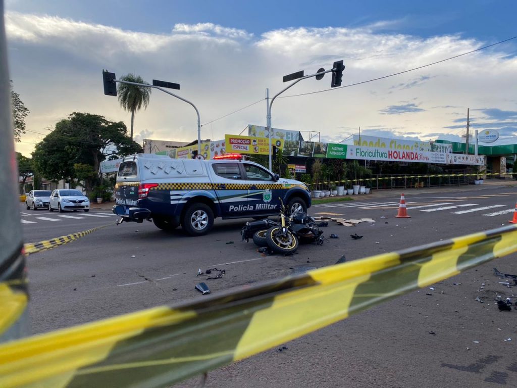 O acidente, que envolveu a motocicleta que a vítima conduzia, do modelo R1 e um carro Toyota Etios, aconteceu no cruzamento com a Rua Pernambuco.