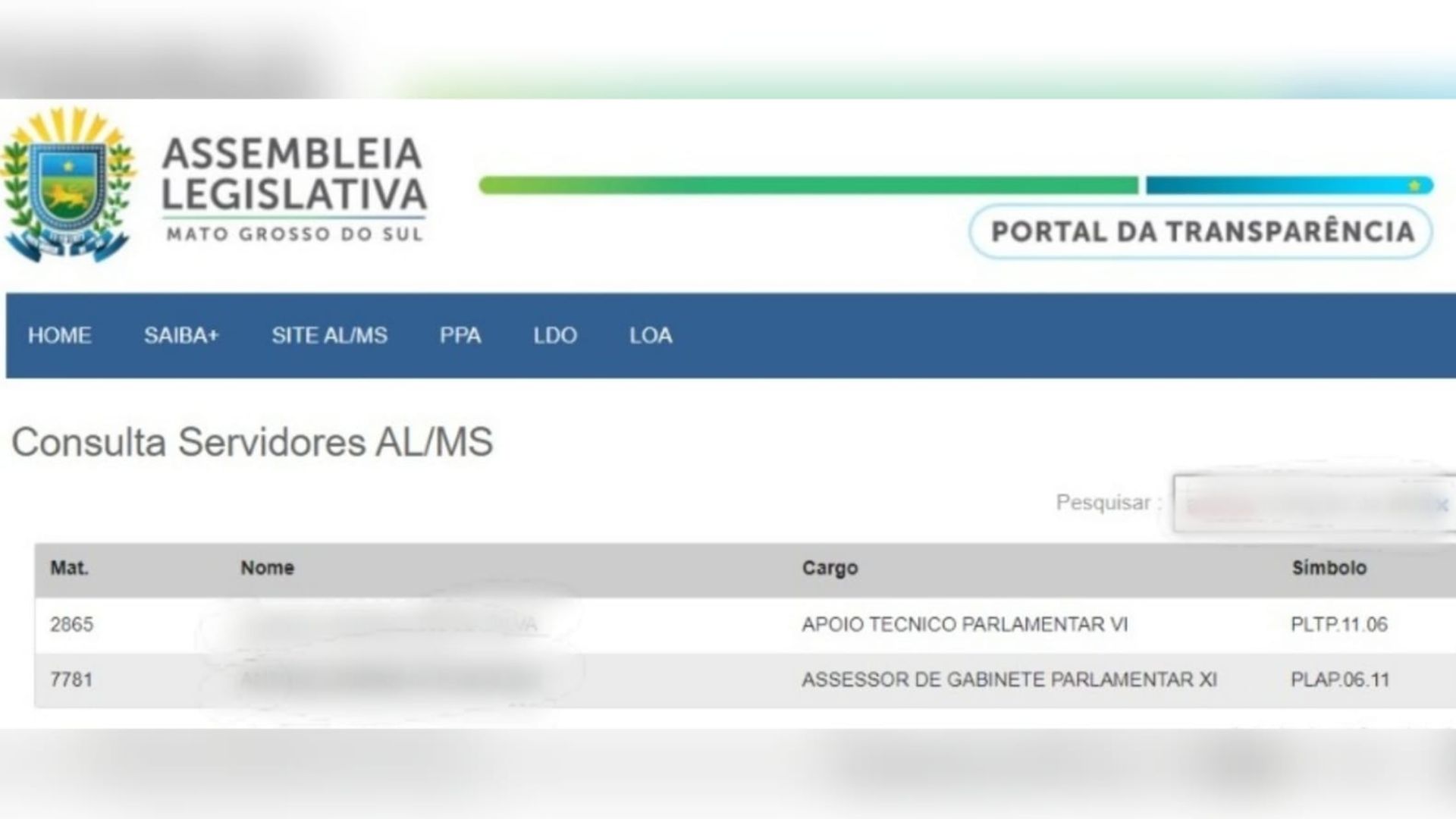 Em consulta ao Portal da Transparência da Alems, o nome da idosa consta com o cargo de apoio técnico parlamentar e adicional de assessor de gabinete. O salário inicial do cargo de técnico parlamentar é de R$ 1.921,01, segundo o portal, sem o valor adicional de assessor. Assim, o valor correspondente ao salário que a idosa teria recebido no período em que consta como funcionária é de R$ 799.140,16, contando o 13º salário.