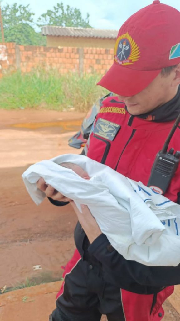 O bebê, que é um menino, foi encontrado por um senhor, que estava em uma bicicleta e parou um motociclista para pedir ajuda.
