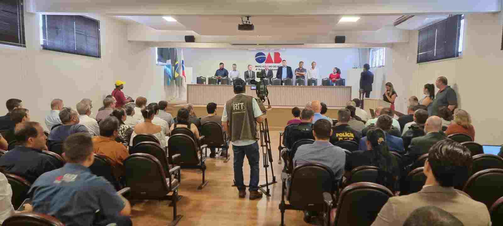 Além de representantes das polícias, de advogados e de parlamentares municipais, o auditório da OAB ficou lotado com participação de sitiantes que possuem propriedades no entorno da Reserva Indígena Federal e pedem providências do Poder Público.