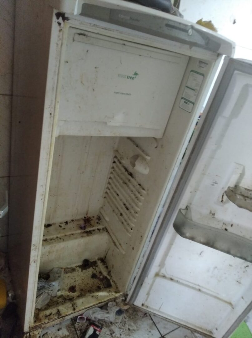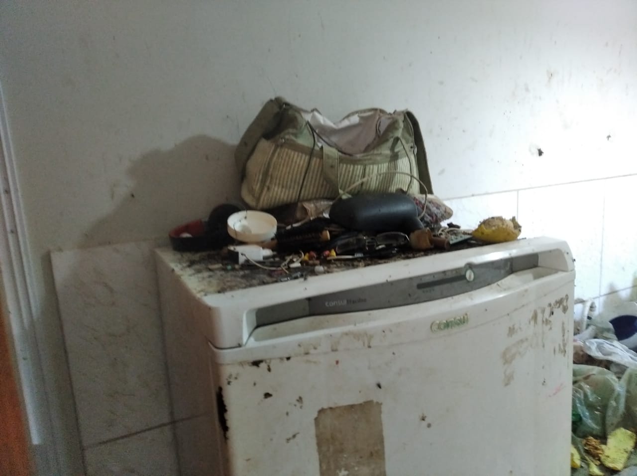 Em uma das fotos, aparece a cozinha com roupas ao chão, diversos objetos e uma geladeira onde não há nada, somente muita sujeira como em cima do micro-ondas também. Outra imagem mostra o quarto, com um colchão ao chão, também coberto de sujeira e objetos. No apartamento também havia fezes de animais, fezes humanas e muito mau cheiro.
