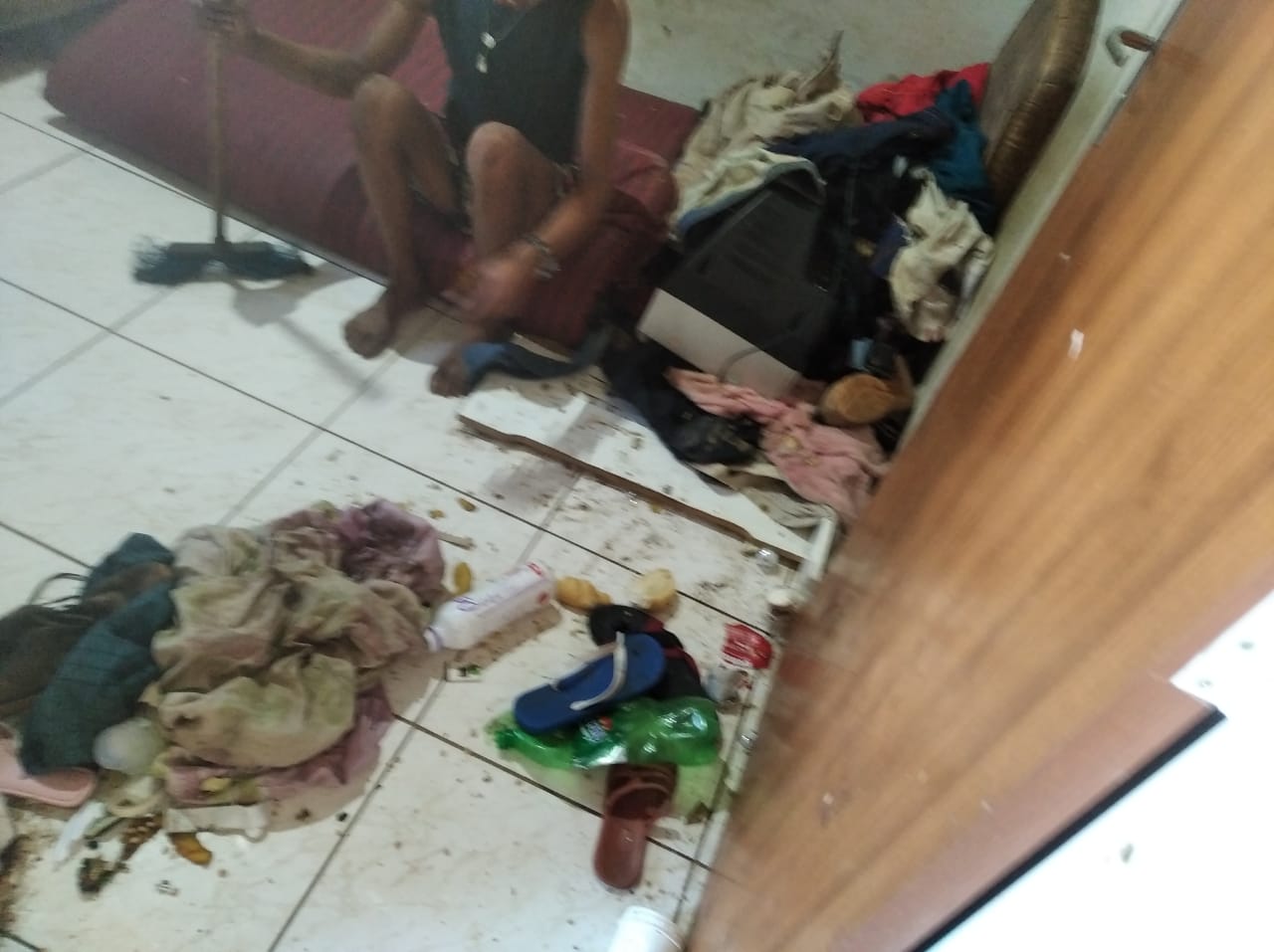 Conforme apurado, a residência estava com um forte odor, tinha fezes por todos os cômodos, assim como insetos e sujeira. As crianças não tinham local adequado para dormir e a casa estava sem água há dois meses.