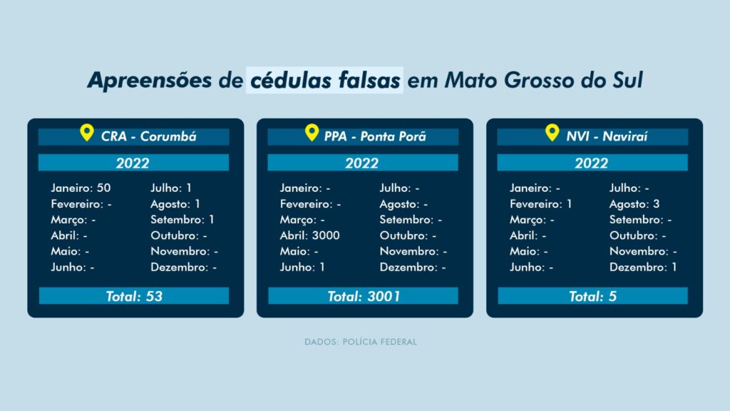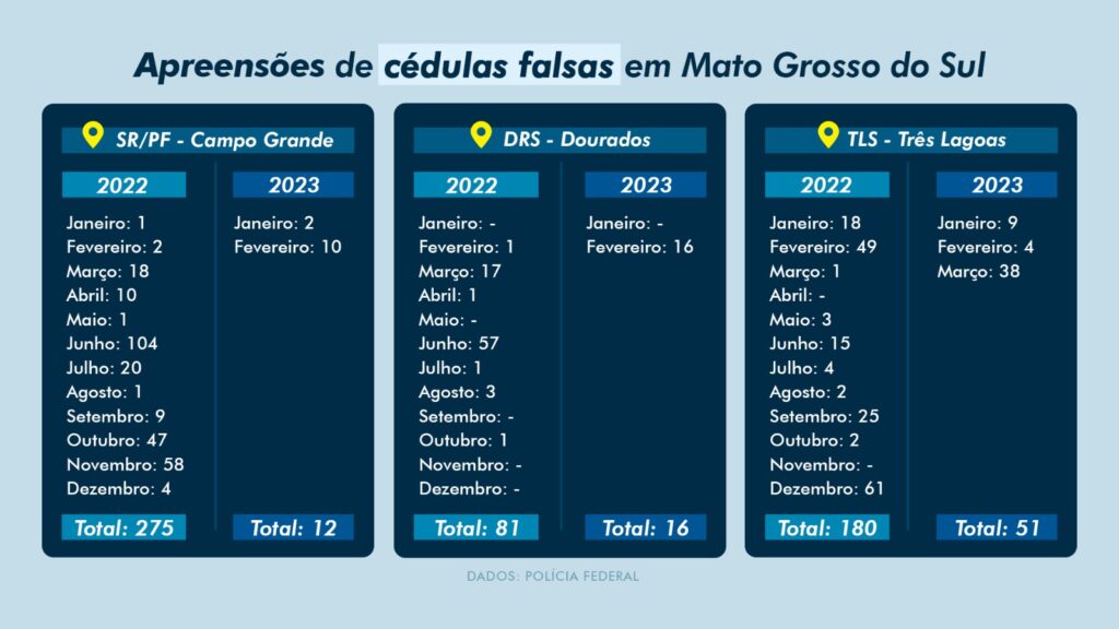 Até fevereiro de 2023, o órgão recebeu 15.079 cédulas falsificadas de todo Brasil, sendo apenas 10 de MS, colocando o Estado entre os seis com menos notas falsas. Em 2022, foram apenas 1.126 cédulas falsificadas identificadas pelo Banco Central, entre as 401.614 notas encontradas pelo país.