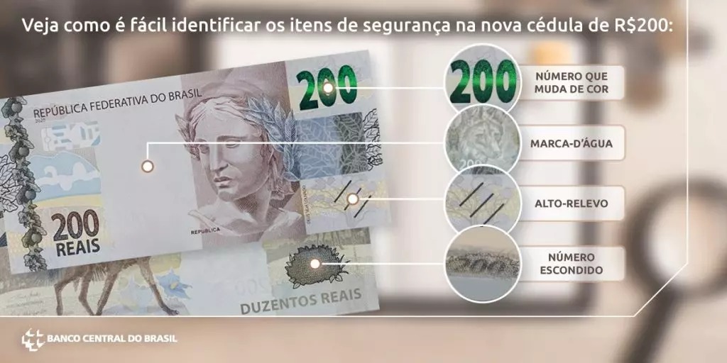 O Banco Central detalha, de forma simples, como identificar notas falsas de acordo com cada cédula específica. Os itens de segurança mudam conforme a família das notas.