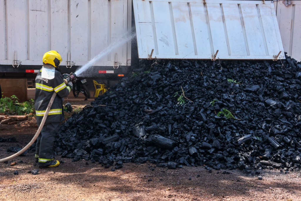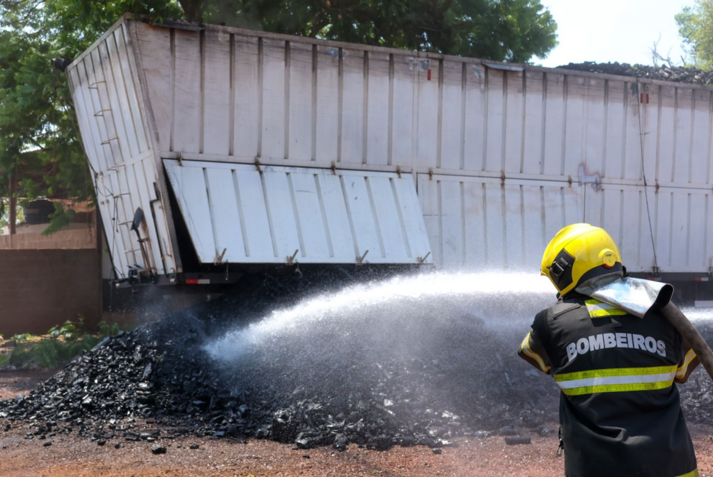 Uma carreta carregada com carvão mobilizou equipe do Corpo de Bombeiros, na manhã desta terça-feira (15), após pegar fogo na MS-040, próximo a Campo Grande. Ninguém ficou ferido no incêndio.