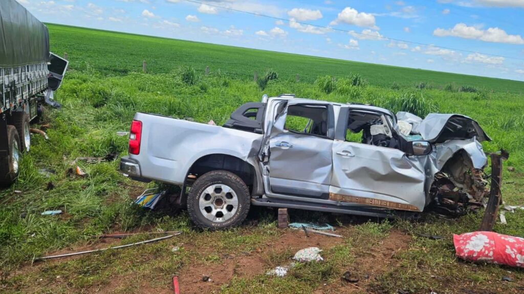 Ambos os veículos ficaram com as frentes totalmente destruídas. Com placas de Tangará da Serra, no Mato Grosso, a caminhonete levava cinco pessoas: duas mulheres, duas crianças e um homem – condutor. As mulheres e uma das crianças morreram ainda no local. Além disso, o corpo de uma das vítimas ficou preso às ferragens.