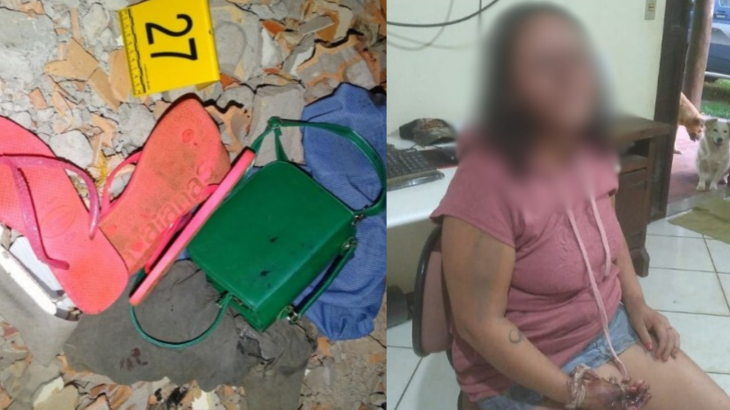 Os pertences da vítima foram dispensados em meio a entulhos atrás da casa, onde havia uma camiseta azul ensanguentada.