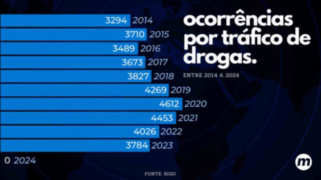 Dados do sistema Sigo Estatística, da Sejusp (Secretaria de Estado de Justiça e Segurança Pública), apontam que, entre 2014 e 2024, foram contabilizadas 94.569 ocorrências do tipo em Mato Grosso do Sul. Os dados correspondem a apreensões feitas pelas polícias Civil e Militar do Estado.