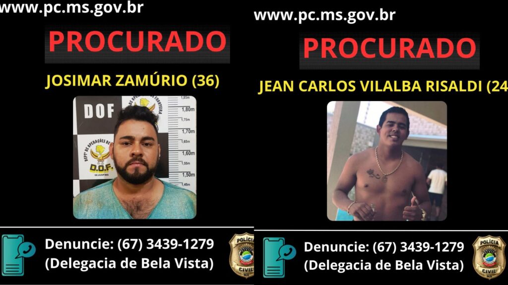 A Polícia Civil está à procura de Josimar Zamúrio, de 36 anos, e Jean Carlos Vivalba Risaldi, de 24 anos, acusados de envolvimento no assassinato do adolescente Gustavo Centurião Valhovera, de 15 anos, durante o roubo de duas caminhonetes, em Bela Vista, a 324 quilômetros de Campo Grande.