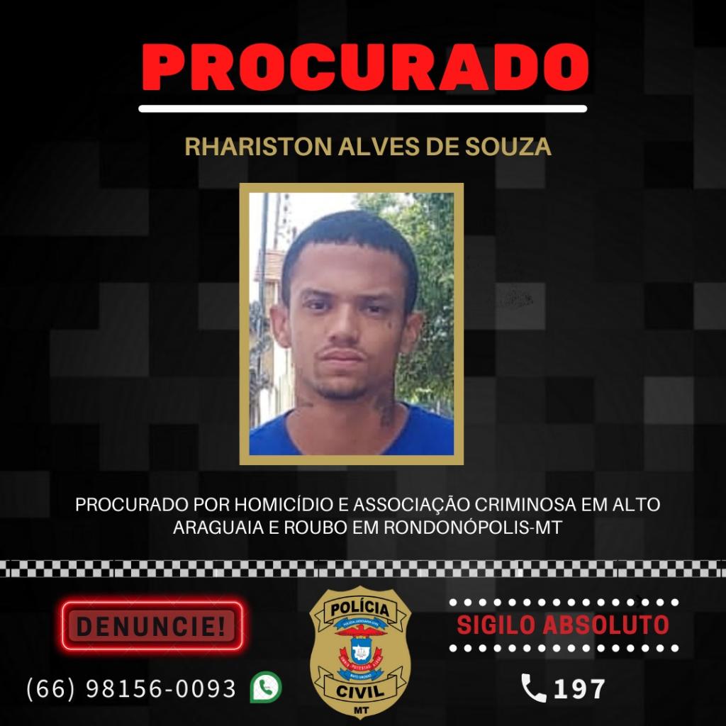A polícia chegou a divulgar foto de Rhariston, que também estava com mandado de prisão em aberto expedido pela Comarca de Alto Araguaia pelos crimes de homicídio, associação criminosa e sequestro e cárcere privado.