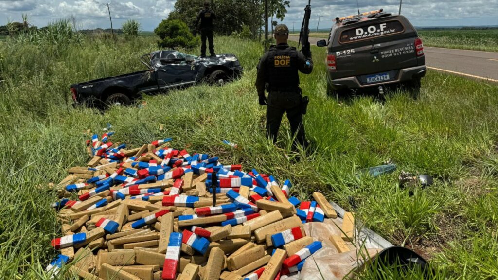 Um homem, de 21 anos, foi preso em flagrante na segunda-feira (15) após capotar uma caminhonete roubada com quase uma tonelada de maconha, avaliada em R$ 2 milhões durante perseguição em Maracaju, cidade a 160 km de Campo Grande