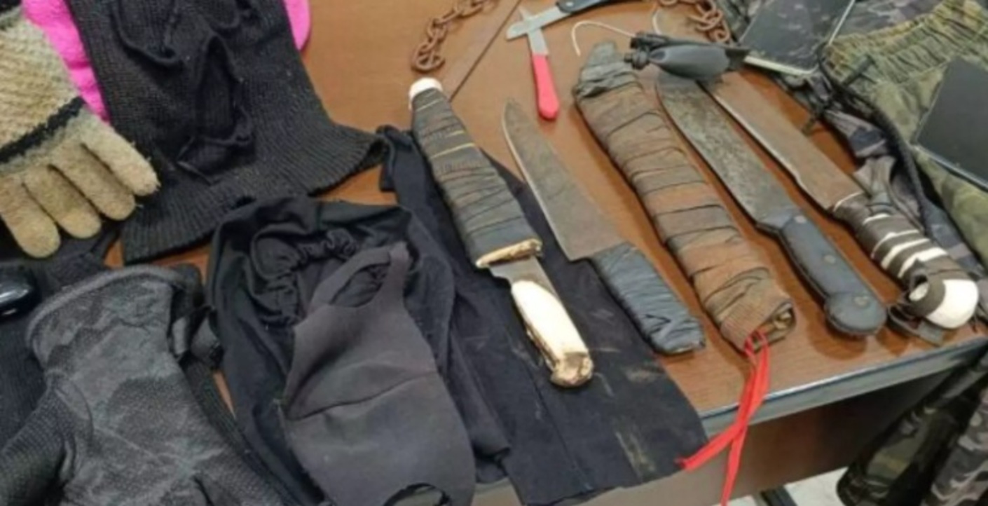 Dois deles portavam facas de 25 e 35 centímetros, enquanto o terceiro carregava anotações e desenhos com símbolos nazistas.