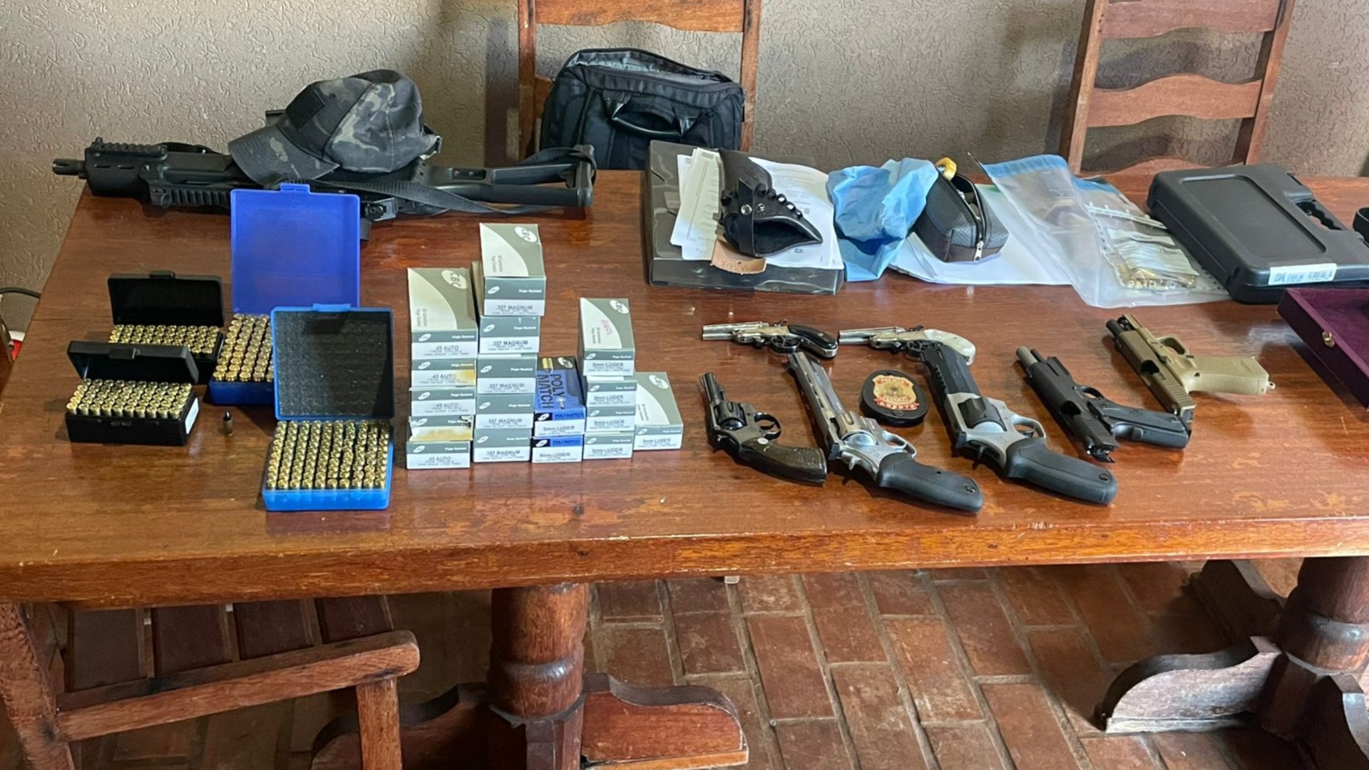 Armas e munições foram apreendidas durante a Operação Contra-Ataque III, na manhã desta quinta-feira (14), em Campo Grande, contra um grupo criminoso que vendia armamento e drogas para uma organização em Minas Gerais. Um haras também foi alvo.