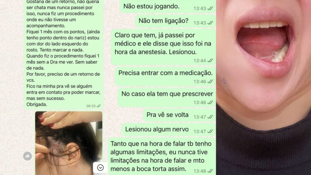 A vítima contou que tentou resolver o problema com a dentista, mas a profissional teria dito que a mulher estaria ‘jogando’ a boca para o lado para mostrar que estaria torta. “Fui em um médico que disse que o nervo teria sido lesionado e precisava entrar com medicação para ver se voltava ao normal”, disse a mulher.