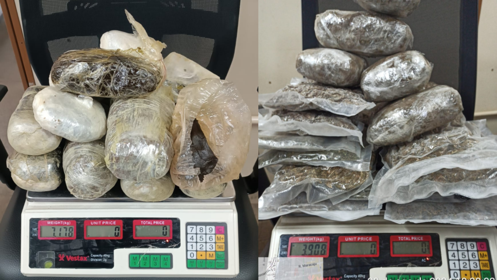 Foram apreendidas também Skunk, cocaína e uma arma de fogo PT Glock 9mm calibre restrito.