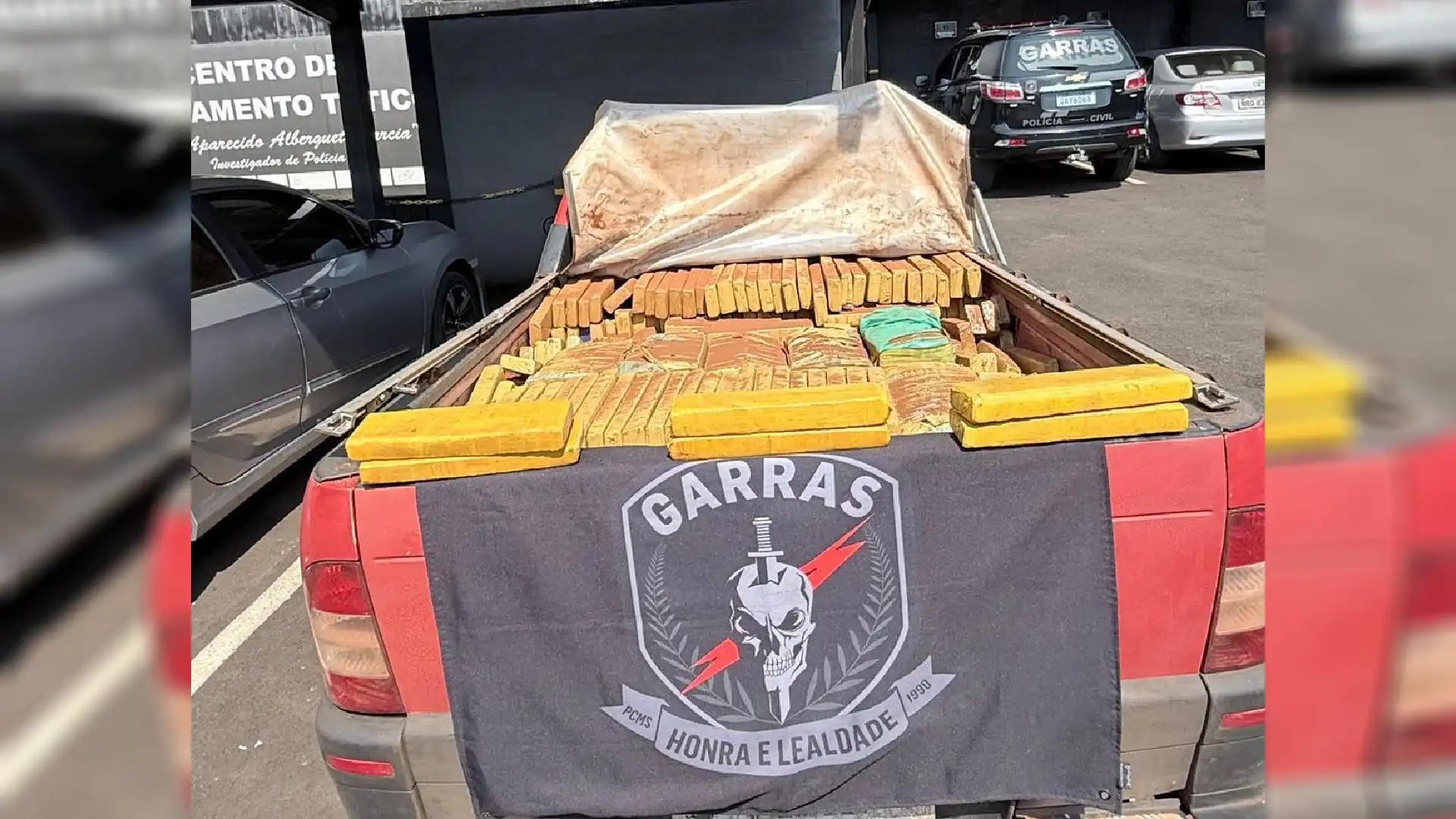 Quando abordado, o condutor tentou fugir, mas foi interceptado. Na Fiat Strada, foram encontrados os tabletes de maconha, no interior do veículo e também na caçamba do veículo.