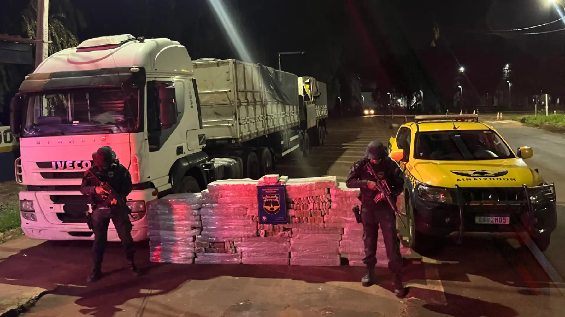 Na inspeção, os policiais localizaram compartimentos ocultos nos dois semirreboques, onde estavam escondidos diversos tabletes de maconha. O motorista confessou que levaria a droga até Curitiba (PR).