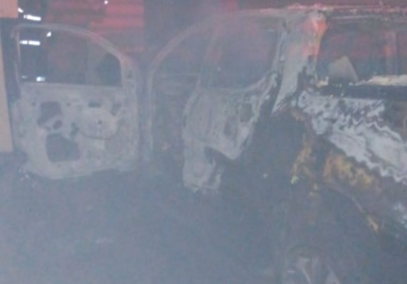Imagem mostra a Fiat Strada onde um homem de 50 anos foi encontrado morto, dentro da casa, onde uma mulher de 40 anos também foi encontrada sem vida. Os dois ficaram com os corpos carbonizados, devido ao incêndio na residência, no bairro Monte Castelo, em Campo Grande, na noite desta quinta-feira (2). Na imagem aparece o veículo totalmente destruído pelo fogo.