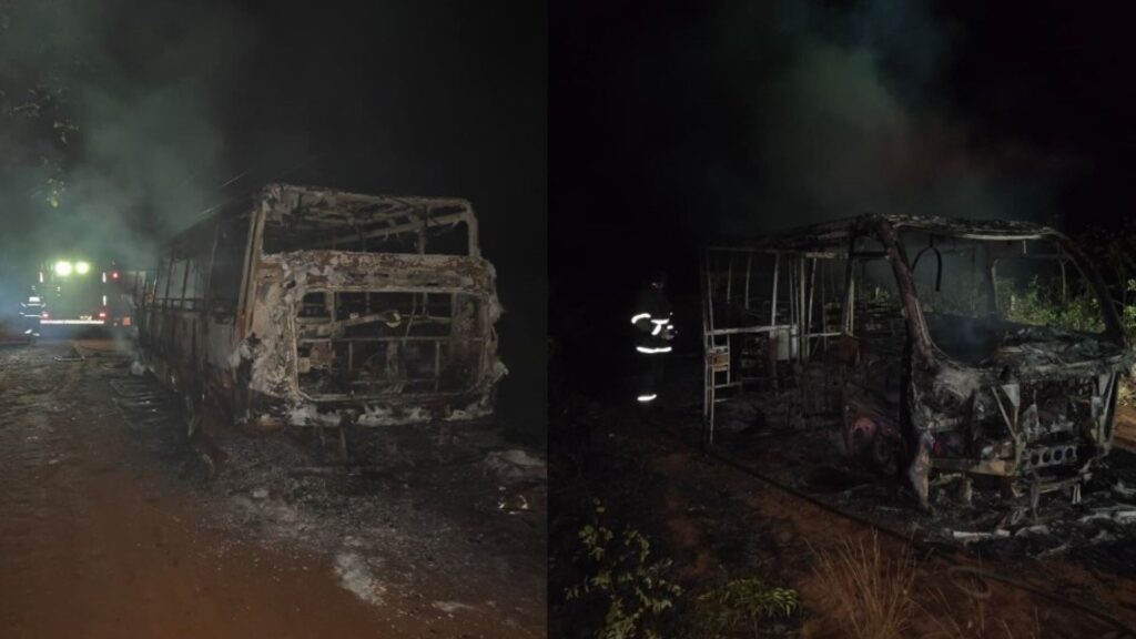 Um micro-ônibus escolar que transportava cinco estudantes pegou fogo no assentamento Teijin, na região de Nova Casa Verde, em Nova Andradina, a 280 quilômetros de Campo Grande, na tarde dessa terça-feira (23).
