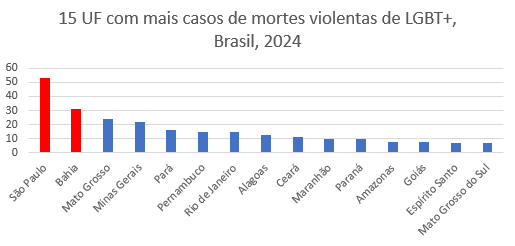 Mato Grosso do Sul está entre os estados da Federação que mais registram mortes de LGBT+. Isso porque o estado sul-mato-grossense ocupa atualmente o 15º lugar em número de mortes, seja por suicídio, homicídio, latrocínio ou até mesmo feminicídio, conforme revelam os dados do Observatório (GGB) Grupo Gay da Bahia, referentes ao ano de 2024.
