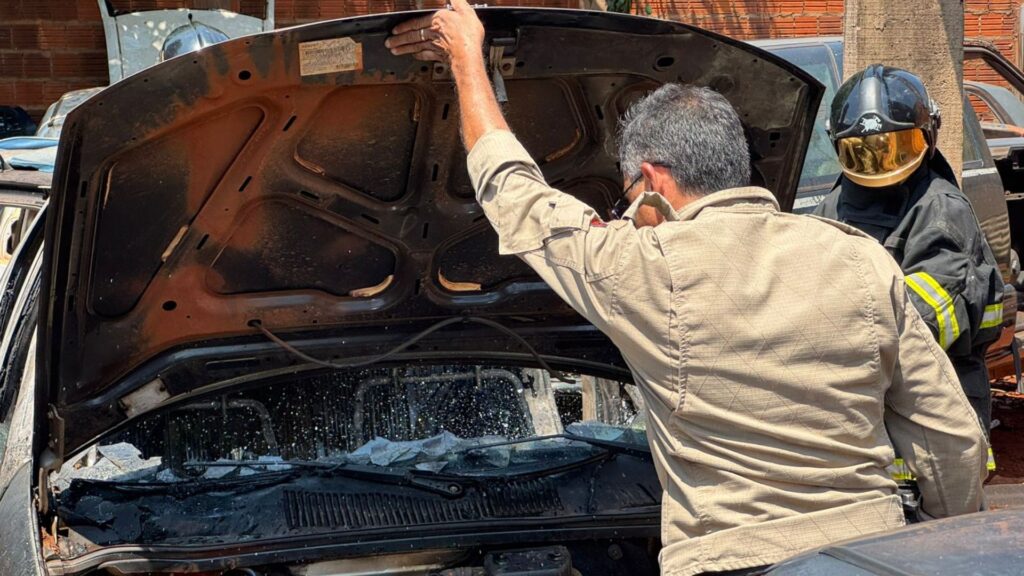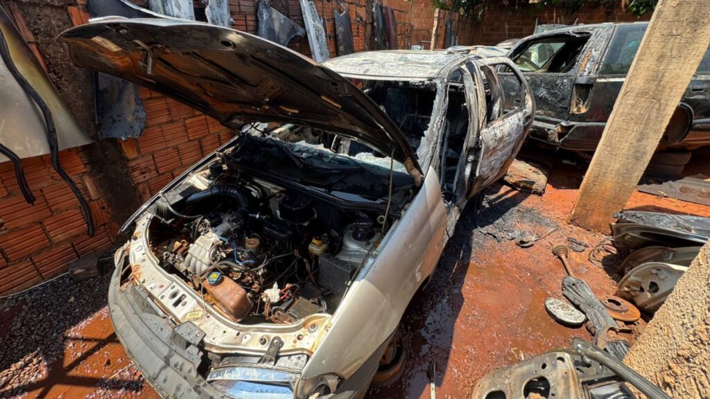A sucata de um veículo pegou fogo durante retirada de combustível, no início da tarde desta quinta-feira (8), na Rua do Príncipe, no bairro Aero Rancho, em Campo Grande. As chamas se espalharam rapidamente e atingiram outro carro que estava no local para retirada de peças.