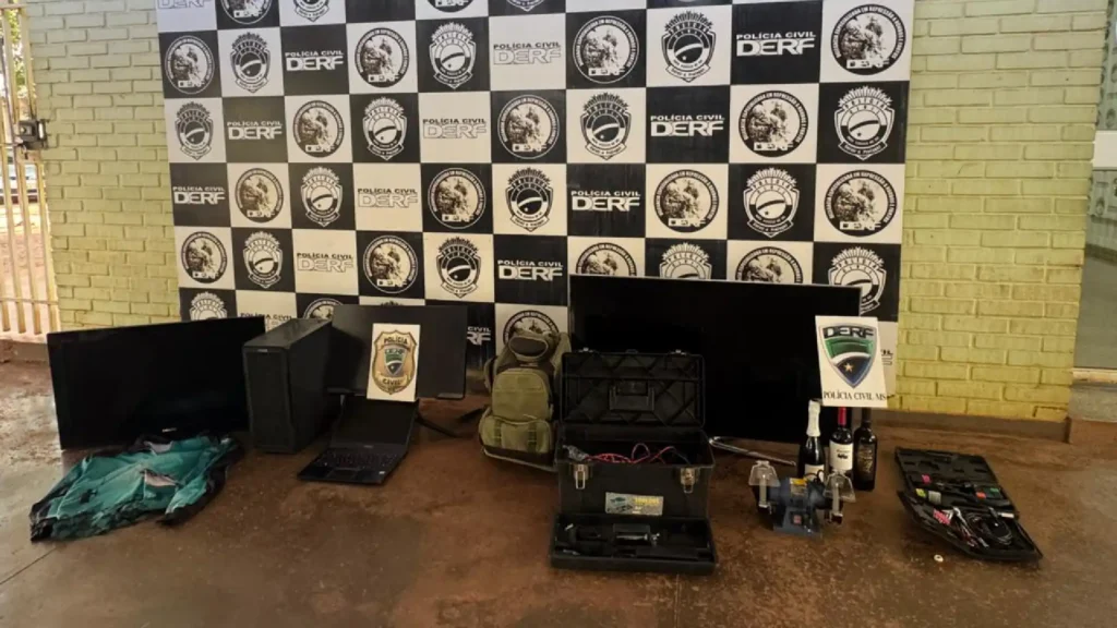 Parte dos objetos furtados, como televisões, CPU, notebooks, monitores, vinhos, caixa de ferramentas, mochila e até uma camisa de pesca, foi encontrada na casa da namorada de um dos suspeitos, uma adolescente de 15 anos. Ela foi apreendida por ato infracional análogo à receptação dolosa.