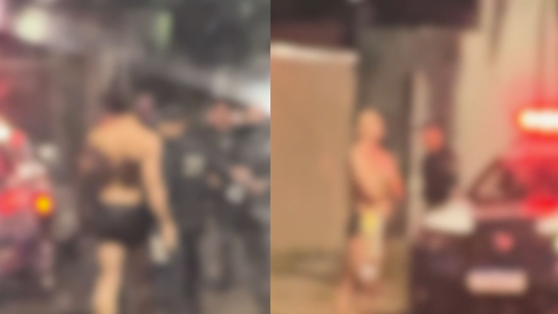 Nas imagens, é possível ver o autor trajado com uma bermuda de cor preta e sem camiseta, no meio da rua. Segundo o boletim de ocorrência, nesse momento, ele estaria em uma crise de surto psicótico. Durante a tentativa de contenção, ele foi para cima de um dos militares e tentou desferir socos.
