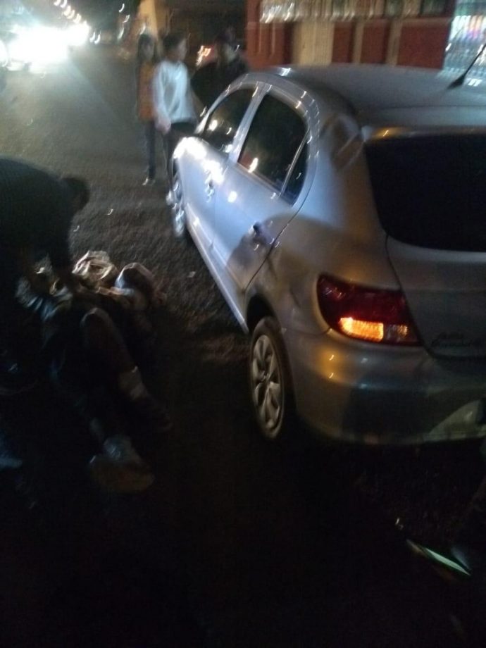 Quando saiu para ver o que tinha acontecido, viu o morador de rua sendo atropelado por um motociclista, que acabou prensando a vítima contra a porta do seu carro Gol, que estava estacionado. O socorro foi acionado e o morador de rua levado para uma UPA (Unidade de Pronto Atendimento).