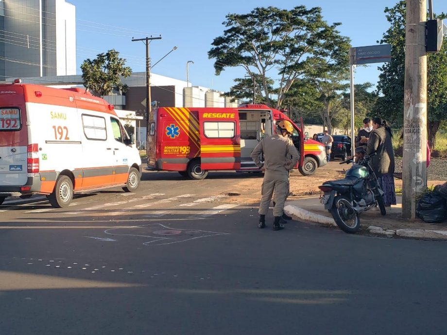 Um motociclista de 21 anos foi socorrido com suspeita de traumatismo craniano pelo Corpo de Bombeiros, na manhã desta segunda-feira (18), na Avenida Mato Grosso, em Campo Grande, após bater em um Fiat Pálio, que era conduzido por uma idosa de 62 anos.